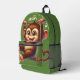 Singe de la Jungle Se balançant sur un arbre Monogramme Enfants Sac à dos imprimé vert Un mignon singe de la jungle se balançant sur une branche d'arbre sur un arrière - plan vert de forêt. Le nom monogramme personnalisé en haut de la page peut être remplacé par votre propre nom ou texte personnalisé. Le cadeau ou l'accessoire parfait pour n'importe quel enfant.