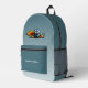 Le Speedy Rocket Snail imprimé sur un sac à dos.
