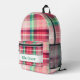 Ce motif écossais rose est un somptueux modèle de sac à dos. Motif moderne minimaliste rose et vert plaid. Une motif moderne et frappante, faite de rayures, avec un nom personnalisé.