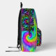 Ce sac à dos super comprend un motif tourbillonnant coloré à la cravate dans un arc-en-ciel de couleurs vives. La poche et le dessus du sac à dos ont un motif à cravate fleuri assorti sur le noir. Ajoutez votre monogramme personnalisé dans la poche. C'est un design amusant avec une esthétique rétro pour les hippies qui creusent l'ambiance psychédélique des années 1960 et les années 70 bohèmes. Utilisez le modèle facile à personnaliser.