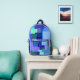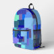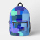 Un sac à dos tendance dans les tons bleus modernes, avec un monogramme personnalisé. Ce design présente un délicieux éventail de rectangles et de carrés dans un éventail excitant de bleus, d'aquas, de violets, et plus encore! Découvrez cet art lumirala intelligent et concis.