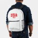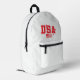 This cut and sew backpack is shown in a patriotic USA flag, and stars print.