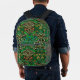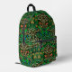 Sac à dos dans un vintage papier peint fleuri William Morris Jacobean motif de tulipes rose corail, marguerites jaunes, violettes bleues, fleurs blanches délicates et feuillage vert jade, sur un arrière - plan noir