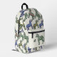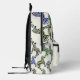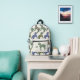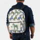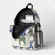 Votre monogramme à côté d'un zèbre rayé vert sur la poche avant. Le reste du sac à dos est un motif de zèbres rayés bleu, rouge brique, vert et moutarde.