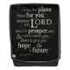 "Je connais les plans que j'ai pour vous", déclare le Seigneur, "prévoit de vous prospérer et de ne pas vous nuire, prévoit de vous donner de l'espoir et un avenir." Jérémie 29:11 est un verset de la Bible qui offre de l'espoir à tous les croyants. Laissez ces Écritures de l'Ancien Testament vous encourager. Ce beau mot d'art a une apparence manuscrite avec des fleurs décoratives défraîchies. Le blanc antique sur le noir donne au design l'aspect de tableau noir.