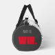Le plus cool Duffle Bag avec "la vie est un JEU, jouer à WIN." logo partout. abstrait clavier imprimé sur un côté. fin du sac avec le logo "jouer pour gagner."