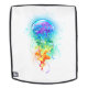 Grande méduse irisée, artistiquement dessinée, brillante, avec de longues tentacules sur le blanc, peinte sur l'arrière - plan multicolore. Méduse arc-en-ciel.