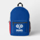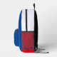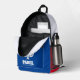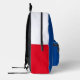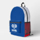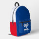 Sac à dos Padel avec options de conception de couleurs personnalisées. Sac cool avec raquette croisée et logo boule et citation humoristique. Ajoutez votre propre texte personnalisé en option. Pratique pour les joueurs de padel, fans, entraîneur, entraîneur de club, fête, événement etc. Padel Mange Le Sommeil Jouer Répéter. Exemple rouge blanc et bleu.