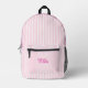 Sac à dos imprimé avec lignes roses personnalisées pour filles Ajoutez une touche de style aux aventures quotidiennes de votre petit avec notre Sac à dos imprimé avec lignes roses personnalisées pour filles. Doté d'une bande rose chic et moderne, ce sac à dos est à la fois mignon et fonctionnel, parfait pour l'école, les jeux ou les voyages. Personnalisez-le avec le nom de votre enfant pour en faire le sien unique! Avec des compartiments spacieux, des sangles réglables et un tissu durable, il est conçu pour rester à la hauteur de son monde animé et coloré de la façon la plus élégante.