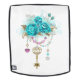 Clé d'or antique aux roses turquoise tendance décorée de feuilles d'or blanc et de perles rose et bleu. Couleur tendance. Rose turquoise. Blanc doré. Tiffany bleu.