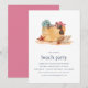 L'invitation chic pour une fête de plage est parfaite pour les anniversaires ou toute occasion balnéaire ! Le design estival présente une illustration aquarelle d'un sac de plage niché dans le sable, avec des lunettes de soleil, des tongs et des coquillages. Personnalisez avec les détails de votre fête de plage dans un mélange chic de typographie serif classique et sans serif moderne.