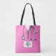 Sac à main unique de créateur sur le thème médical avec des tenues de chirurgien roses créatives. Pour personnaliser, modifiez le texte pour ajouter un nom.