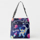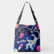 Image fantastique sur un sac de carrosserie customisé d'un astronaute de dessin animé flottant dans l'espace au milieu de planètes colorées. Cliquez sur "Personnaliser" pour customiser avec votre nom ou autre texte que vous aimez.