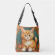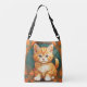 Sac Crossbody avec un chat orange dans le style d'Alphonse Mucha! Cette adorable petite chatte aux yeux verts est encadrée de feuilles d'automne. Un cadeau merveilleux pour les amoureux de les chats et les collectionneurs Art Nouveau !