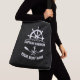 Bateau nautique, roue de navire - Hélène et aviron croisé avec votre nom de capitaine personnalisé et nom de bateau sur un grand Sac fourre-tout noir et blanc élégant.