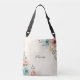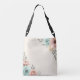 Ce sac fourre-tout personnalisé présente des fleurs délicates et croquantes, aux textures douces d'aquarelle rose pâle, vert menthe et jaune pâle.