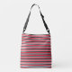 Sac fourre-tout rayé blanc rouge noir. Le design simple est assorti à des vêtements décontractés.