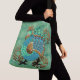 Un beau design de sac fourre-tout avec ce paon aqua et noeud avec un motif assorti à l'arrière.