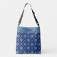 Silvery blue and white snowflakes on a blue background-what better way to say "Merry Christmas" than with this festive, winter-themed holiday crossbody bag.
