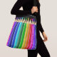 Conception multicolore de crayon de crayon (nom facultatif) ; une rangée des crayons surdimensionnés colorés (ou des crayons colorés) dans des tonalités lumineuses d'arc-en-ciel créent ce motif - adapté aux personnes de style bohème et à n'importe qui, de n'importe quel âge, qui aime juste la couleur.