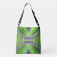 L'oeuvre abstraite, verte et violette de ce Sac fourre-tout carrossable a été réalisée à partir d'une photo originale de ZoeSPEAK d'une feuille sur un plante kalanchoe. Les petites parties sur le bord de la feuille (poussées au violet dans cette abstraction) tombent et deviennent de nouveaux plantes.