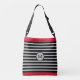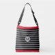 Sac Ajustable Élégant Monogramme sur noir, rouge et argent rayé
