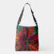 Ce sac fourre-tout porté en bandoulière présente une œuvre d'art originale de ZoeSPEAK représentant un croton, une plante de jardin tropical aux feuilles panachées qui ressemblent à une impression d'animal sauvage dans la jungle. Les feuilles commencent par être vertes et jaunes, puis deviennent plus foncées, passant à un orange rougeâtre et à un vert bleu profond à mesure qu'elles poussent dans une explosion de sauvagerie.