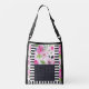 Cette belle fourre-tout découpée en rayures blanches et noires avec fleurs roses et pois est parfaite pour toutes les occasions.