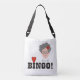 Voici un grand sac de carrosserie que grand-mère peut emmener à BINGO, un excellent endroit pour mettre tous ses gains. De grands mots noirs et rouges et un visage de grand-mère sur le devant, avec une sangle réglable. Bon cadeau pour une grand-mère qui aime BINGO!
