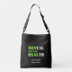 Un SAC CROSSBODY motivant qui promeut la santé mentale des hommes et encourage les hommes à parler. La conception montre les mots SANTÉ MENTALE combinés avec les hommes qui parlent SANTÉ MENTALE. Il y a un espace réservé Scripture verse de Ecclesiastes sur le devant et un nom d'espace réservé sur le verso, qui sont PERSONNALISABLE, de sorte que vous pouvez personnaliser avec votre nom, organisation ou texte de votre propre choix. Une partie de la collection de la santé mentale.