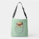 Un doodle d'un mignon petit carlin qui regarde à l'extérieur d'une poche verte. Design adorable pour les amateurs de carlins et les propriétaires de carlins.