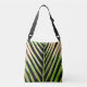 Le motif tropical rayé sur ce Sac fourre-tout carrossable a été réalisé à partir d'une photo originale de ZoeSPEAK d'une fronde de palmier royale au soleil, contre un arrière - plan vert foncé de pins. Le contraste est fort entre l'arrière - plan foncé et les feuilles verts jaunes avec leurs reflets rose saumon, ce design abstrait de la nature ressemble presque à un poster de animal.