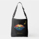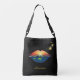Lèvres d'Océan lever, tortues de mer, étoiles et calligraphie sur noir Crossbody Bag.