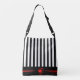 Un cadeau parfait pour la Saint-Valentin ! Ce sac carrossable mod a des rayures verticales noir et blanc avec une pointe de détails rouges et un coeur rouge mignon.
