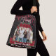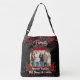 ✨Modern, large black crossbody tote bag with vivid red roses and an arched template frame for you to upload your favorite family moment photo.🌹