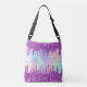 Un arc-en-ciel, un arrière - plan holographique de couleur unicorne. Décoré avec des gouttes de parties scintillant rose et violet, la peinture goutte à goutte. Personnalisez et ajoutez vos initiales monogrammes, lettres violettes. Votre monogramme comme motif arrière - plan.