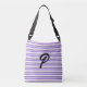 Plutôt Monogrammé initial en script noir. lavande pastel et rayures géométriques violettes et blanches. Designs originaux de TamiraZDesigns.