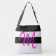 Monogramme personnalisé M Motif rayé Hot rose noir et blanc Stripes sac