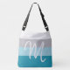Monogramme personnalisé M Motif rayé Bleu clair Gris rayures Sac
