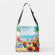 Ce sac de carrosserie a un design amusant pour l'été avec une scène de plage avec des fleurs, papillons, palmiers et la plage et l'océan dans l'arrière - plan. L'image a des couleurs vives qui sont parfaites pour l'été.