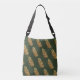 Motif de plumes dorées, vert sur Sac fourre-tout tout-sur-impression personnalisé