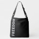 Sac carrossable noir et blanc classique avec texte Freedom pour un style chic et simple.