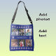 Téléchargez six de vos photos préférées, et elles apparaîtront à la fois à l'avant et à l'arrière de ce sac fourre-tout de la Marine. Ne vous inquiétez pas si les vôtres ne sont pas exactement carrés - ils seront automatiquement coupés pour s'adapter. Le texte est modifiable : l'exemple montre "Sourires et câlins !" sur le devant, et "Merveilleux Monde" sur le dos. Des fleurs de poinsettia stylisées apportent une décoration d'hiver supplémentaire. [Photographie © Storytree Studios, Stanford, Californie]