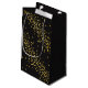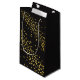 Le sac cadeau en papier est affiché dans un joli imprimé noir et or étoiles. Customisez ce sac cadeau ou achetez tel quel.