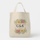 Bouquet floral élégant avec roses rose pâle et jaune, arrière - plan blanc, et design de sac fourre-tout mariage de modèle de texte personnalisable.