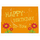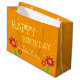Surprenez vos amis ou membres de votre famille à l'occasion de leur anniversaire avec un cadeau d'anniversaire. Un sac cadeau à fleurs mignonnes est idéal pour tous les âges. Étendre vos voeux d'anniversaire, aimer et partager leur bonheur ensemble dans ces occasions spéciales avec une carte de voeux d'anniversaire aussi. Le design : - arrière - plan de couleur orange, conçu avec des fleurs mignonnes, groupe d'étoiles blanches comme décorations et avec des mots de Joyeux Anniversaire à vous. Toutes ses lignes sont réglables, redimensionnées ou déplacent sa position à votre goût.