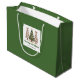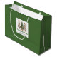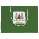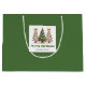Sac cadeau minimaliste à l'aquarelle avec un motif léopard ludique dans des tons de vert terreux et d'or. Personnalisez avec votre nom pour une présentation de cadeau de Noël élégante.
