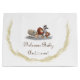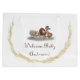 Cute farci Animal Le design à thème présente l'image d'adorables animaux farcis rassemblés pour accueillir Baby. Votre message personnel est affiché ci-dessous dans une police décorative dorée brun. Conçu pour accompagner les invitations et accessoires Cute farci animal Baby Shower.