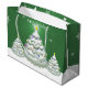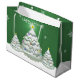 Sachez vos cadeaux de Noël avec ce sac cadeau fantaisiste et festif Green Christmas Tree. Le design des sacs cadeaux comprend un trio d'arbres de Noël enneigés décorés contre un arrière - plan vert et des flocons de neige tombants. Autres cadeaux et objets de vacances disponibles avec ce design aussi.