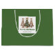 Sac cadeau minimaliste avec motif léopard ludique dans des tons de vert terreux et doré, personnalisable avec votre nom pour une présentation de cadeau de Noël élégante.